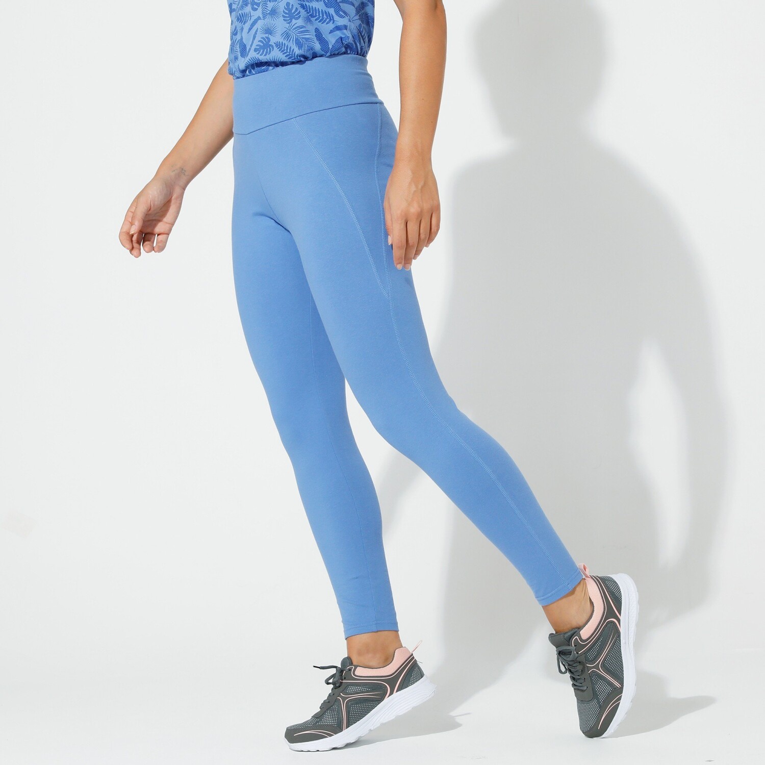 Wygodne legginsy o sportowym kroju są idealne na chwile komfortu i relaksu. Szeroki, elastyczny, podwójny pas. Wysoka talia, efekt płaskiego brzucha. Wyściełany i strukturalny krój. Przeszycia na całej długości nogawek z efektem wydłużenia. Można prać w pralce.