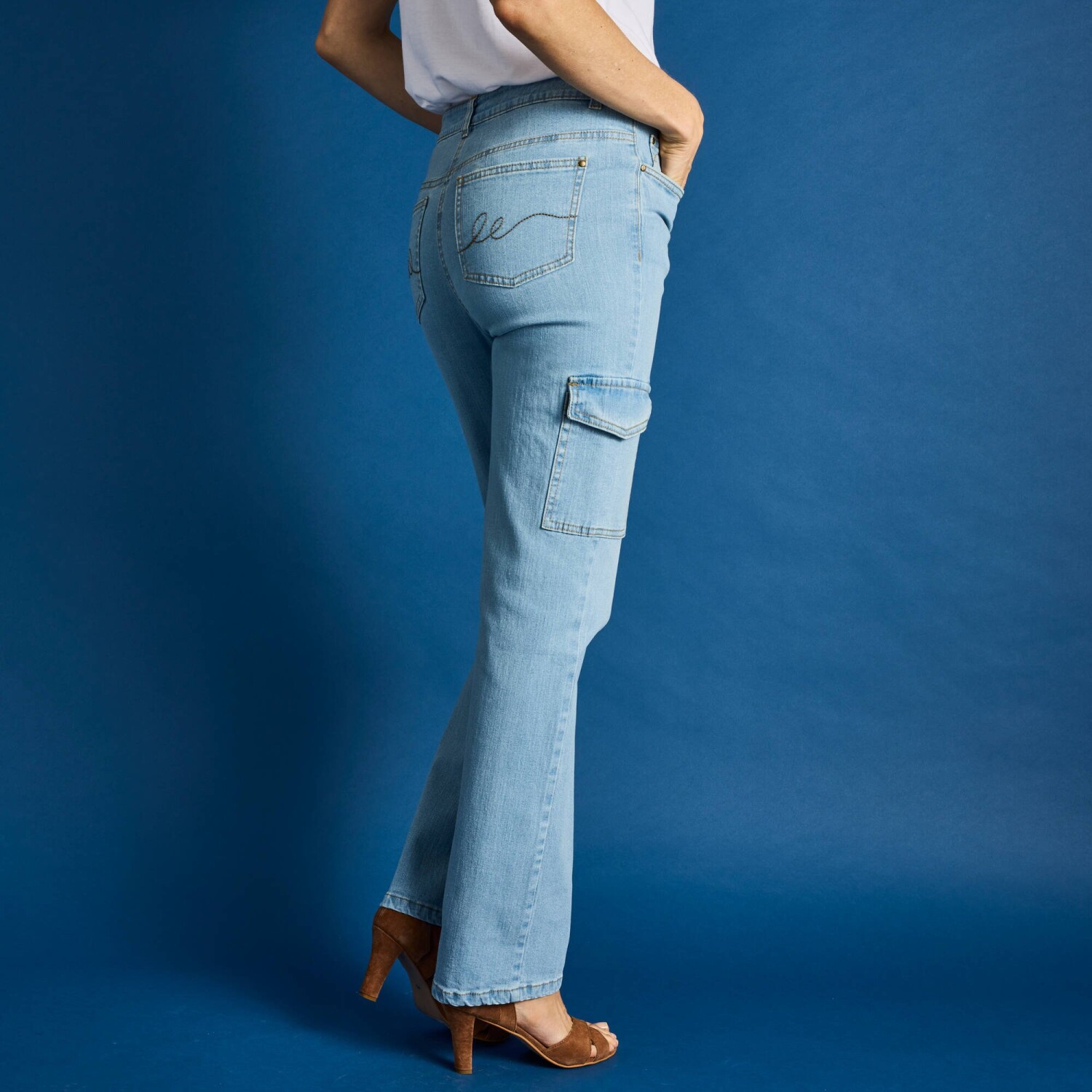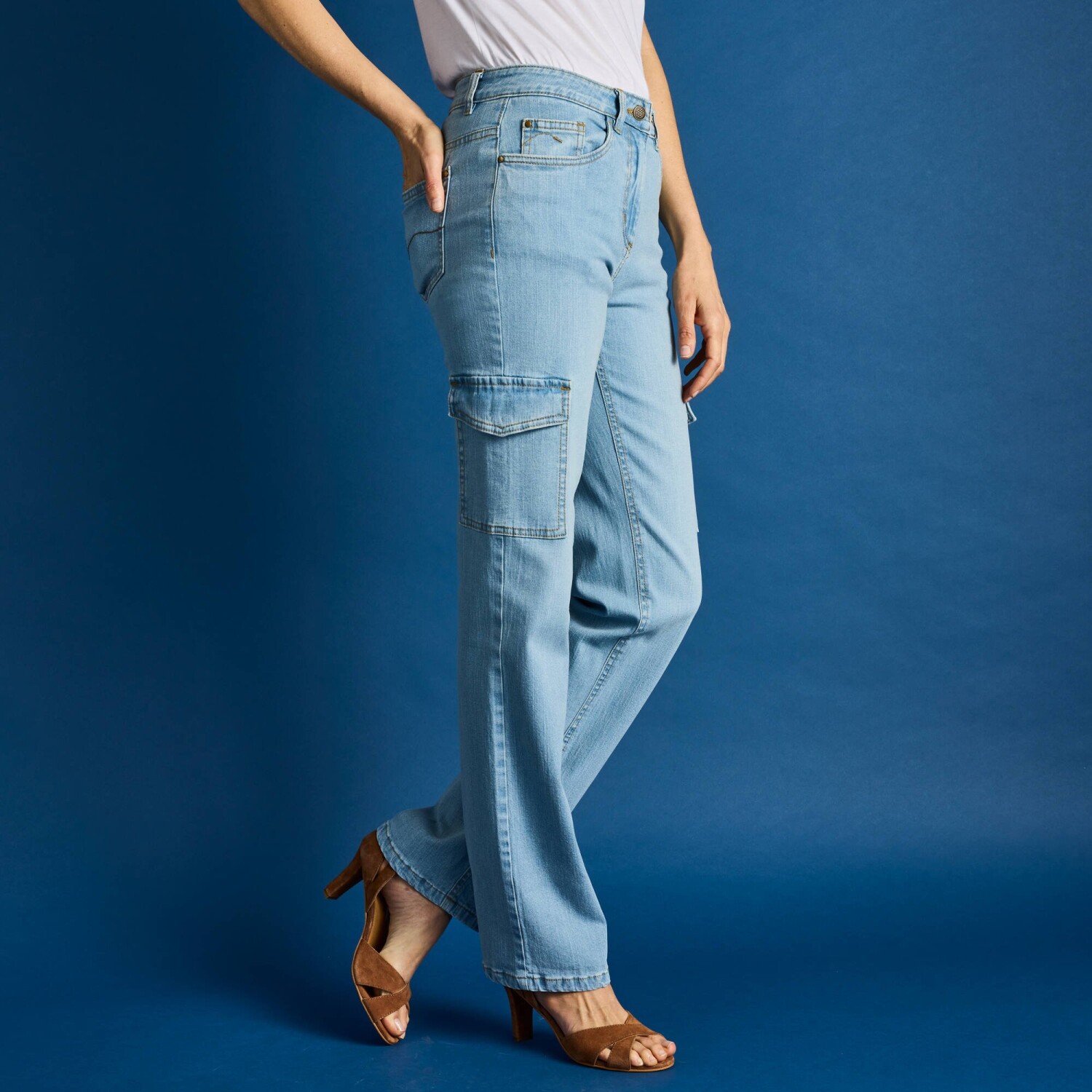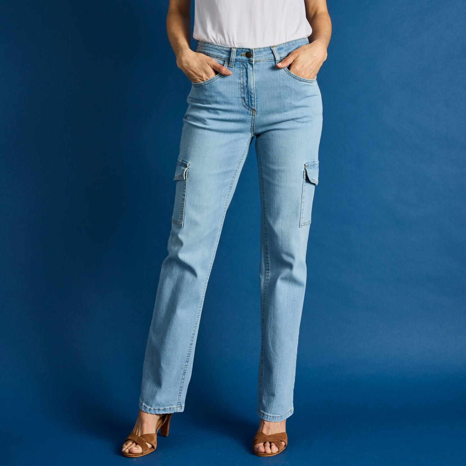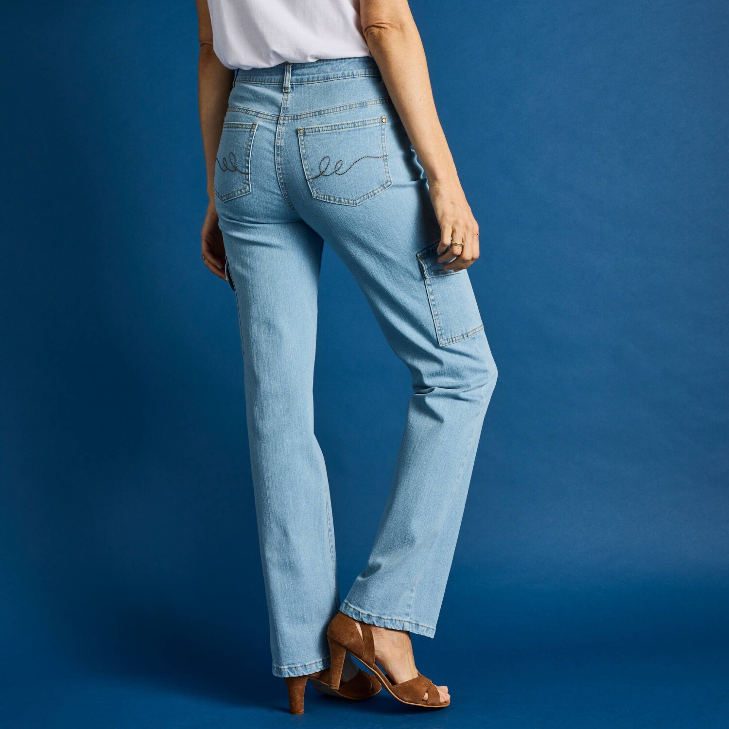 Proste dżinsy Cargo są jednocześnie stylowe i swobodne. Rozciągliwy, wygodny dżins. Prosty krój. Regularna wysokość talii. Wyprofilowany pas ze szlufkami. Zapięcie na suwak i guzik. 5 kieszeni z nitami, 2 z haftem z tyłu. 2 boczne naszywane kieszenie z patką. Podniesiony panel tylny. Certyfikat Made In Green od OEKO-TEX. Oprócz weryfikacji kilkuset substancji chemicznych, które przyczyniają się do wysokiego bezpieczeństwa, etykieta ta gwarantuje rozważne zasady produkcji i kontrolowane praktyki społeczne. Można prać w pralce.