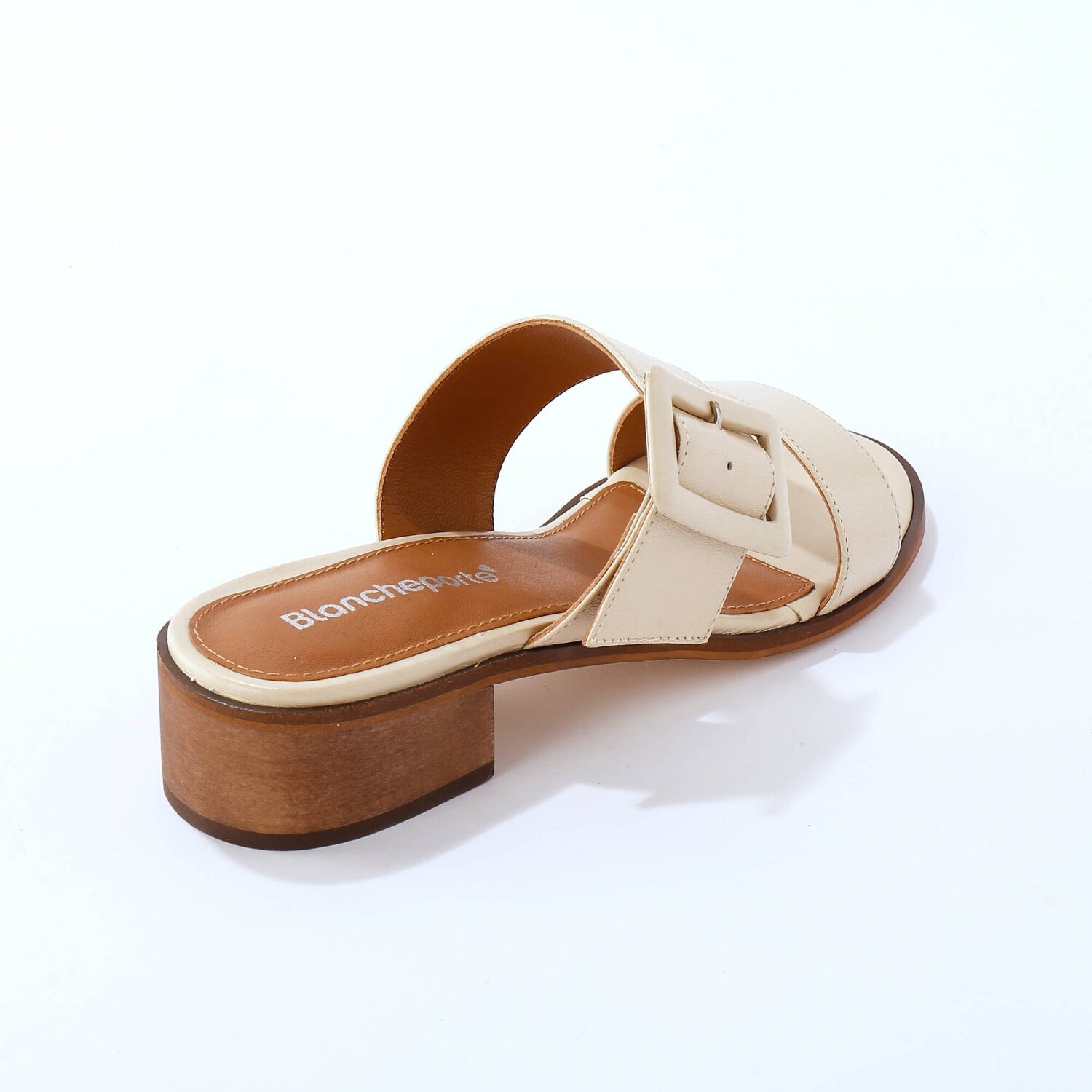 Aby uzyskać wyrafinowany, swobodny wygląd, wybierz skórzane pantofle na obcasie. Łatwe w noszeniu. Wykonane z wysokiej jakości skóry naturalnej. 2 szerokie paski. Klamra na cholewce do regulacji. Kwadratowy obcas o drewnianym wyglądzie. Ten but jest wykonany ze skóry pochodzącej z garbarni certyfikowanych przez Leather Working Group, których zobowiązaniem jest zmniejszenie wpływu na środowisko poprzez mniejsze zużycie wody i energii.