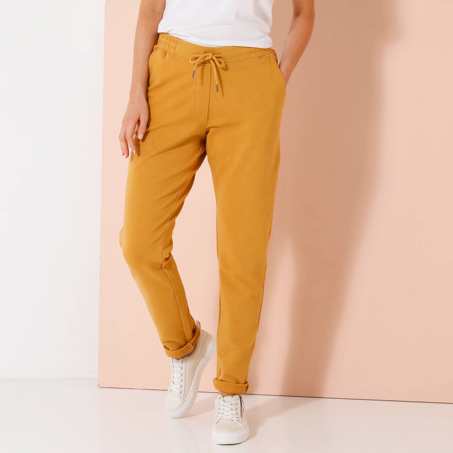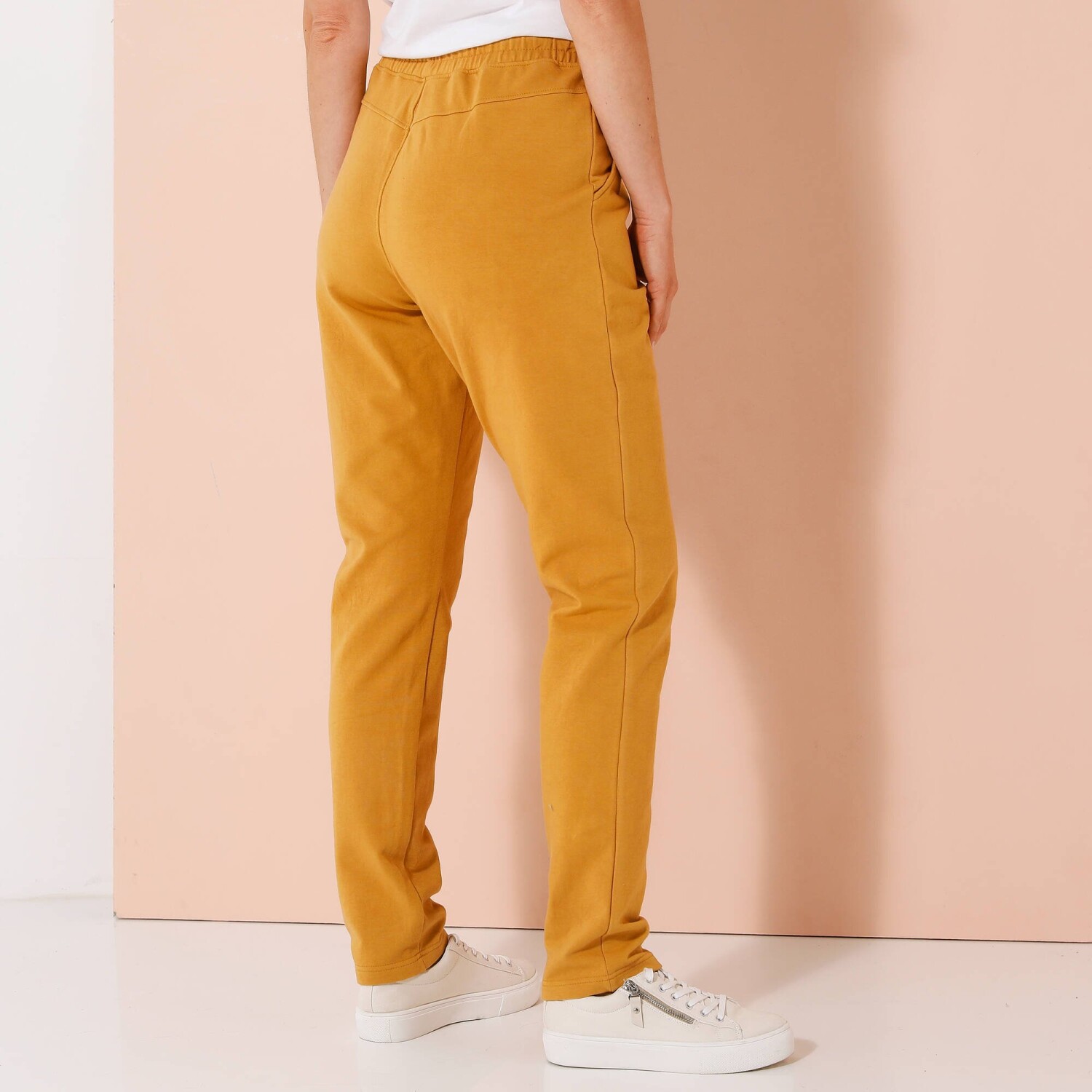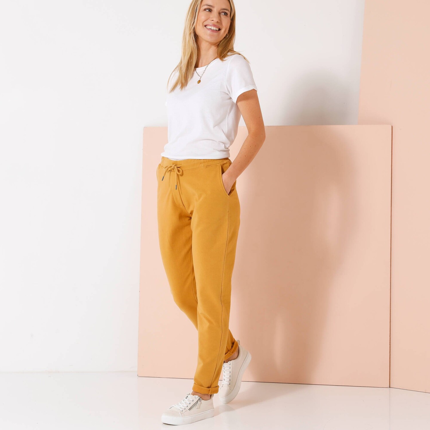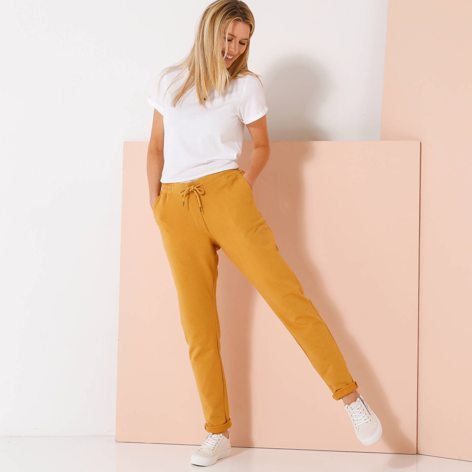 Na wpół sportowe, na wpół klasyczne, te spodnie Molton staną się najwygodniejszym elementem Twojej garderoby! Z plisą lub bez, z balerinami lub trampkami, zawsze będą stylowe. Wykonane z cienkiego moltonu. Płaski przód, elastyczny pas z tyłu. 2 kieszenie boczne. Standard 100 według Oeko-Tex (CQ 1216 / 3 IFTH). Znak ten identyfikuje produkty tekstylne, które zostały poddane testom laboratoryjnym pod kątem szerokiej gamy szkodliwych substancji, a produkt jest bezpieczny poza obowiązującymi normami. Prać w temperaturze 30°C.