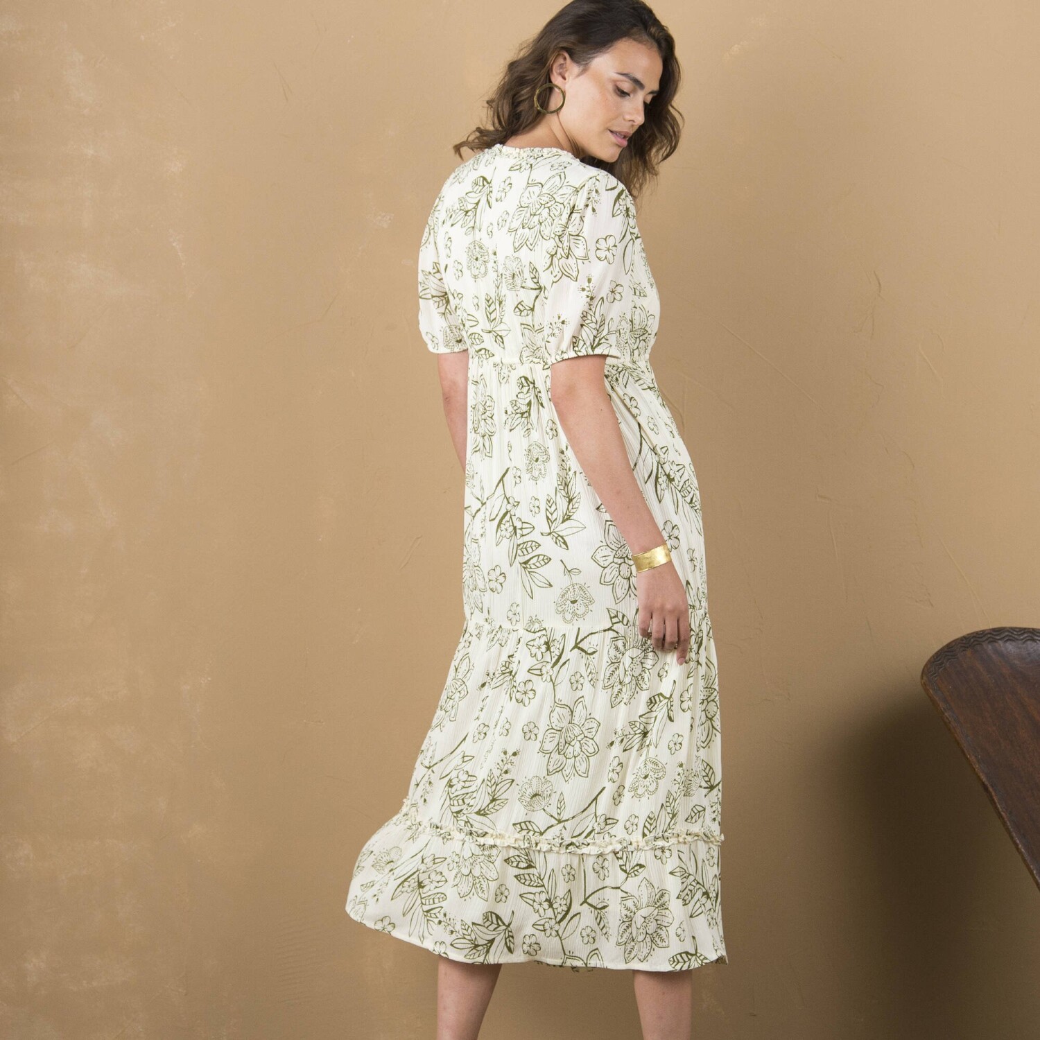 Sukienka midi z kreponu z kwiatowym nadrukiem