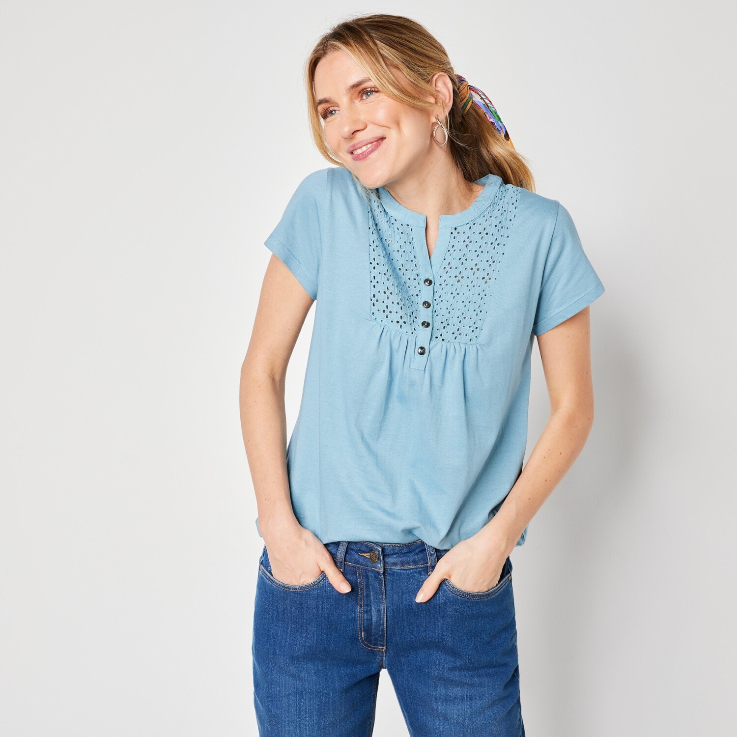 2 koszulki z dekoltem w szpic