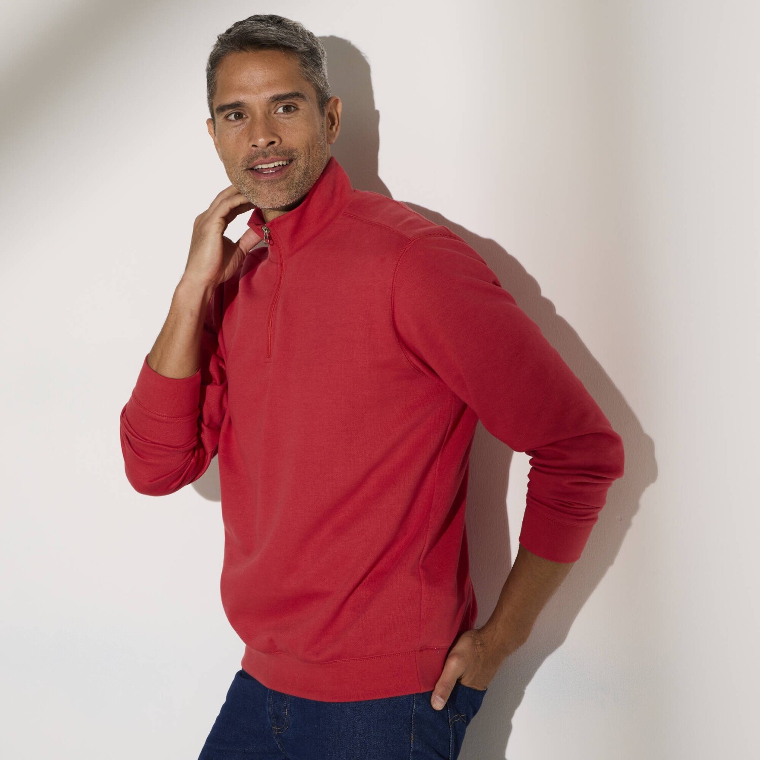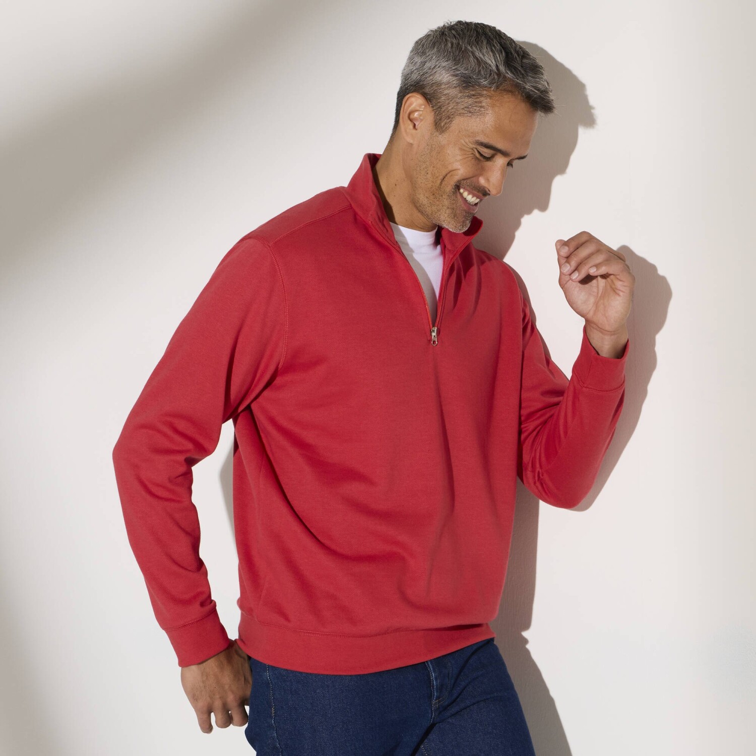 Jednokolorowa bluza z zamkiem błyskawicznym pasuje do każdej męskiej garderoby. Wykonana z wygodnego meltonu ze szczotkowanym wnętrzem. Zamek błyskawiczny z przodu. Stójka. Długie rękawy. Prosty dół. Prążkowane obszycia. Oeko-Tex Standard 100 (nr CQ 1216/3 IFTH). Znak ten identyfikuje produkty tekstylne, które zostały poddane testom laboratoryjnym pod kątem szerokiej gamy szkodliwych substancji, a produkt jest bezpieczny poza obowiązującymi normami. Można prać w pralce.