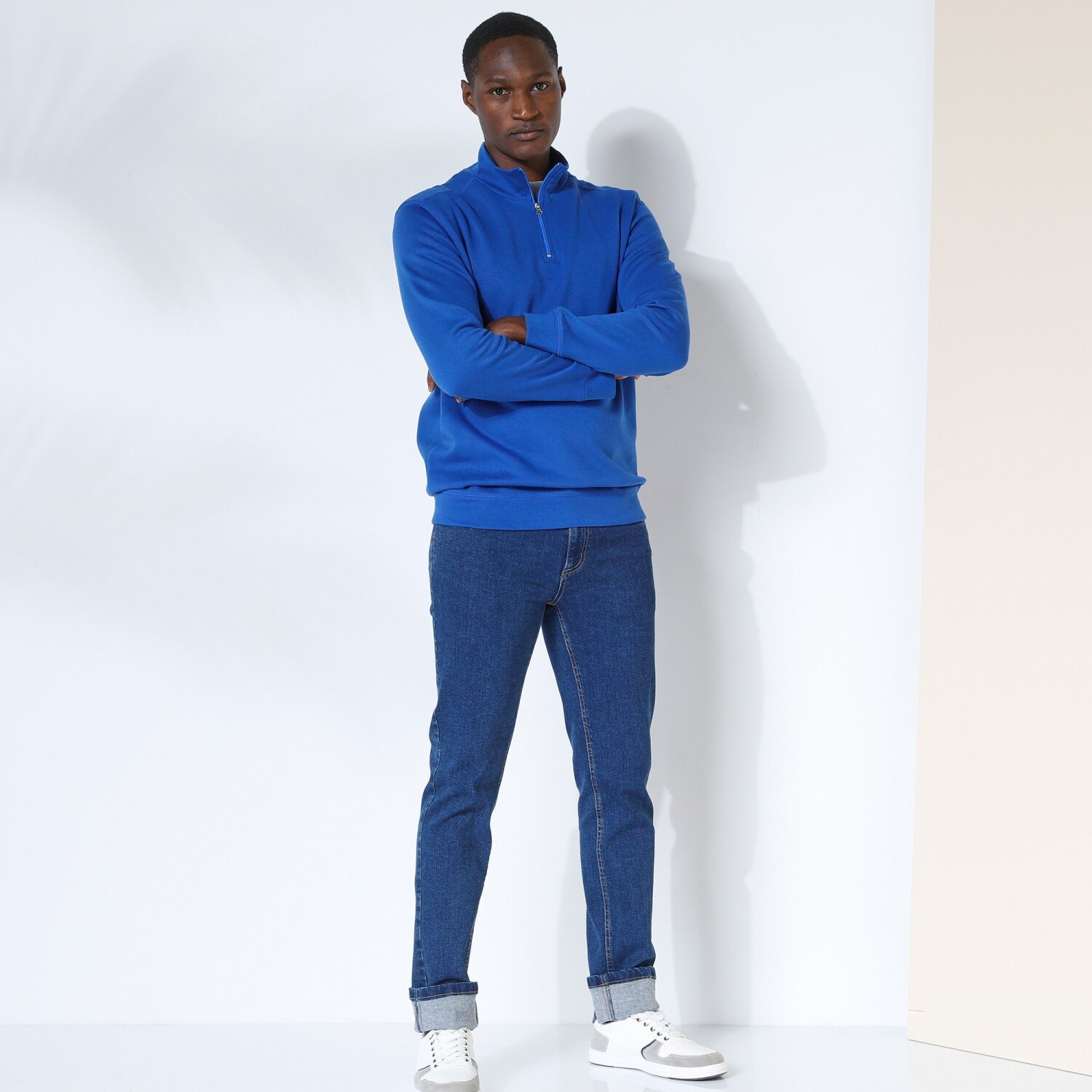 Ciepła bluza z okrągłym dekoltem i haftem, pełna stylu. Okrągły dekolt. Wewnętrzna lamówka z materiału chambray. Dyskretny haft na piersi. Długie rękawy. Prosty dół. Ściągacz. Oeko-Tex Standard 100 (nr CQ 1216 / 3 IFTH). Ten znak identyfikuje produkty tekstylne poddane testom laboratoryjnym na obecność szerokiej gamy substancji szkodliwych, a produkt jest bezpieczny w użyciu, wykraczając poza obowiązujące normy. Można prać w pralce.
