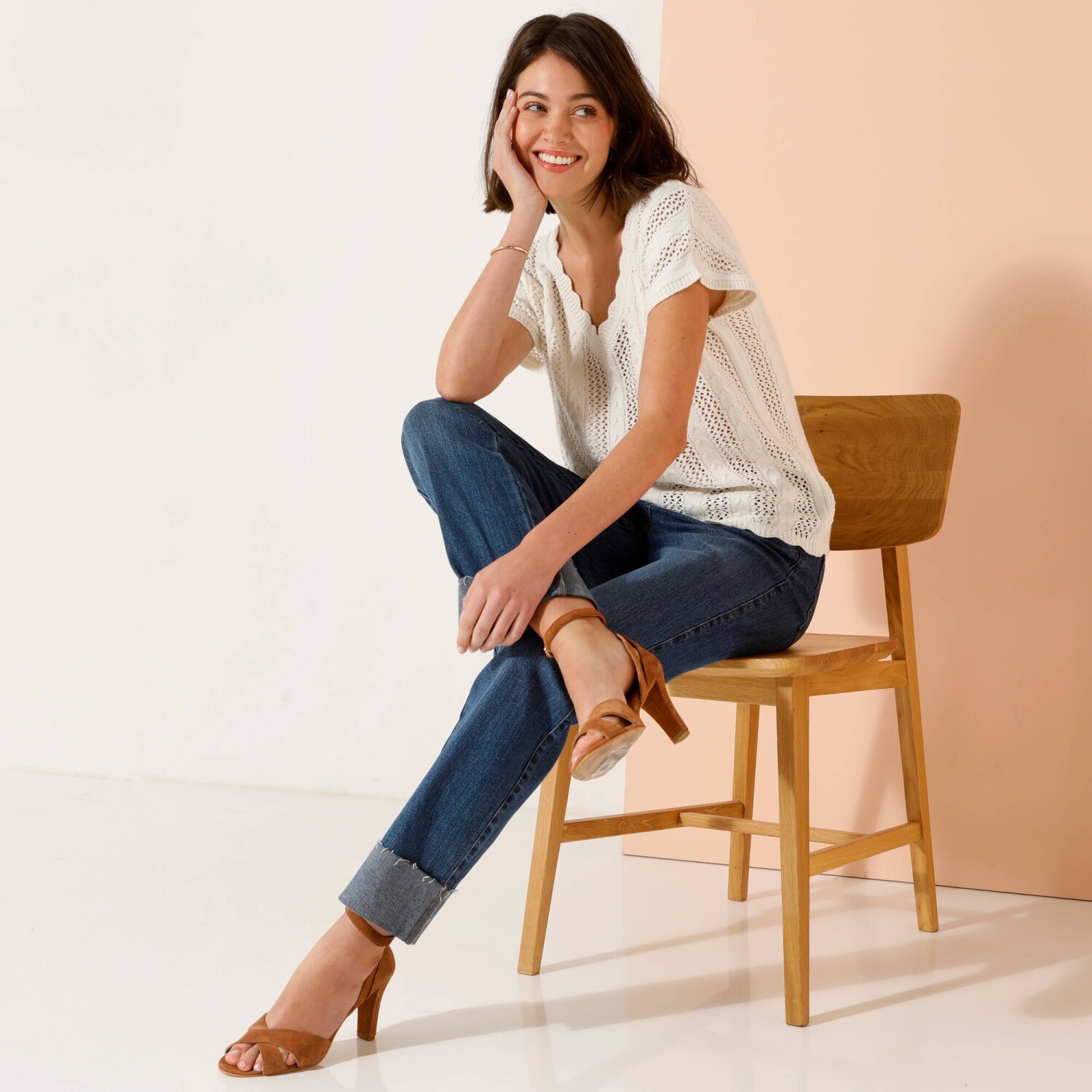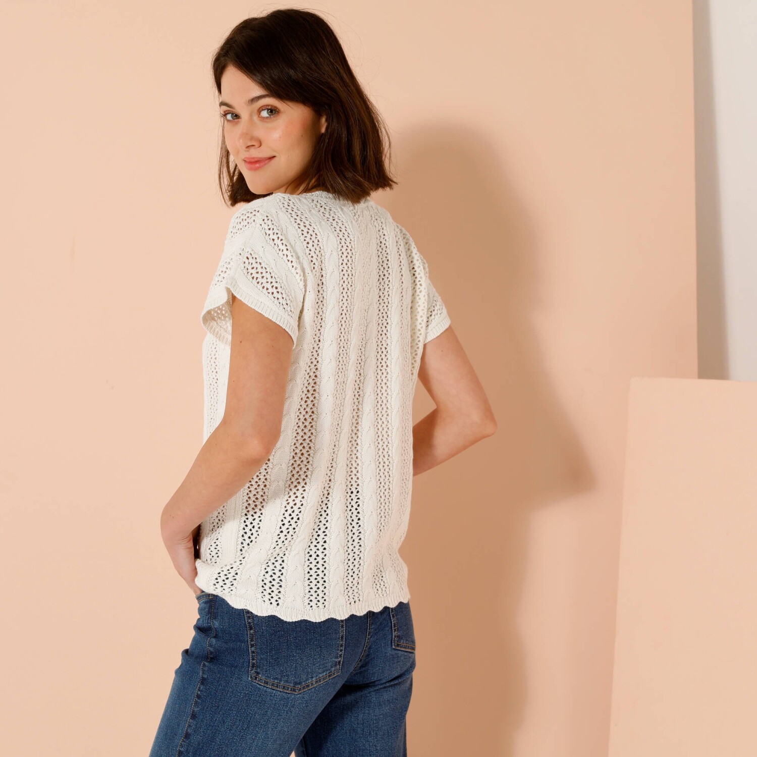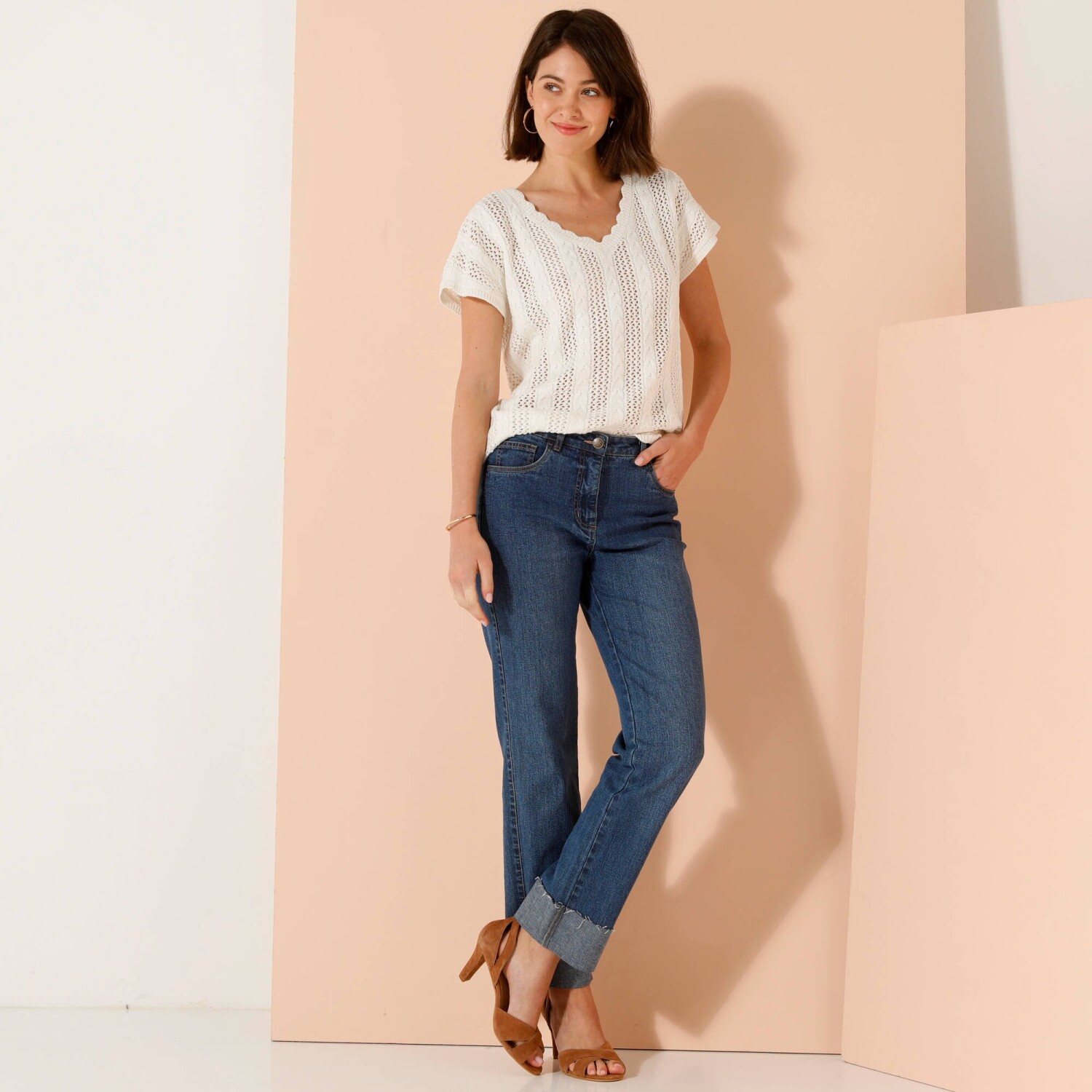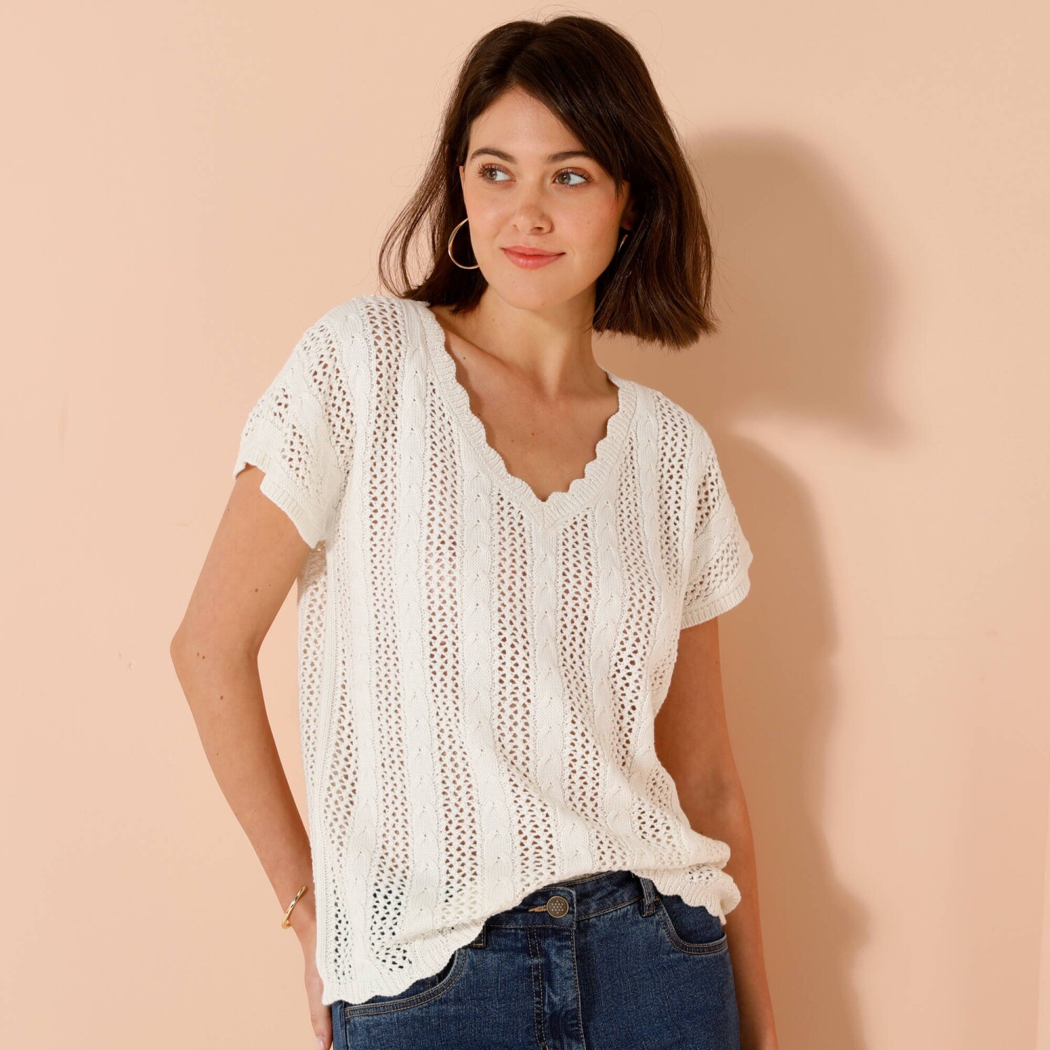 Marszczone rękawy, delikatny haft, uwodzicielski dekolt - tej modnej bluzce niczego nie brakuje. Zaokrąglony dekolt V. Zapięcie na guziki z przodu. Opuszczone ramiona wykończone falbaną. Marszczenia na piersi. Prosty dół. Można prać w pralce.