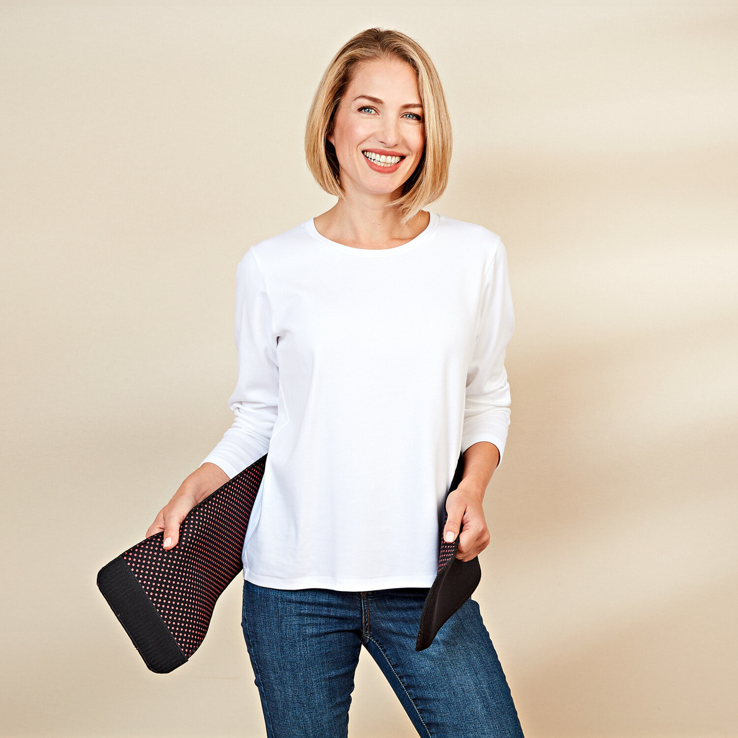 Wkładka chłonna jest wbudowana bezpośrednio w majtki. Zapewnia to komfort jak w zwykłej bieliźnie, ale jednocześnie doskonałą ochronę. Wkładka chłonna natychmiast odprowadza wilgoć ze skóry i błyskawicznie wysycha. Niewidoczna pod ubraniem. Wkładka chłonna jest częścią majtek. Higieniczne pranie w temperaturze 95°C.