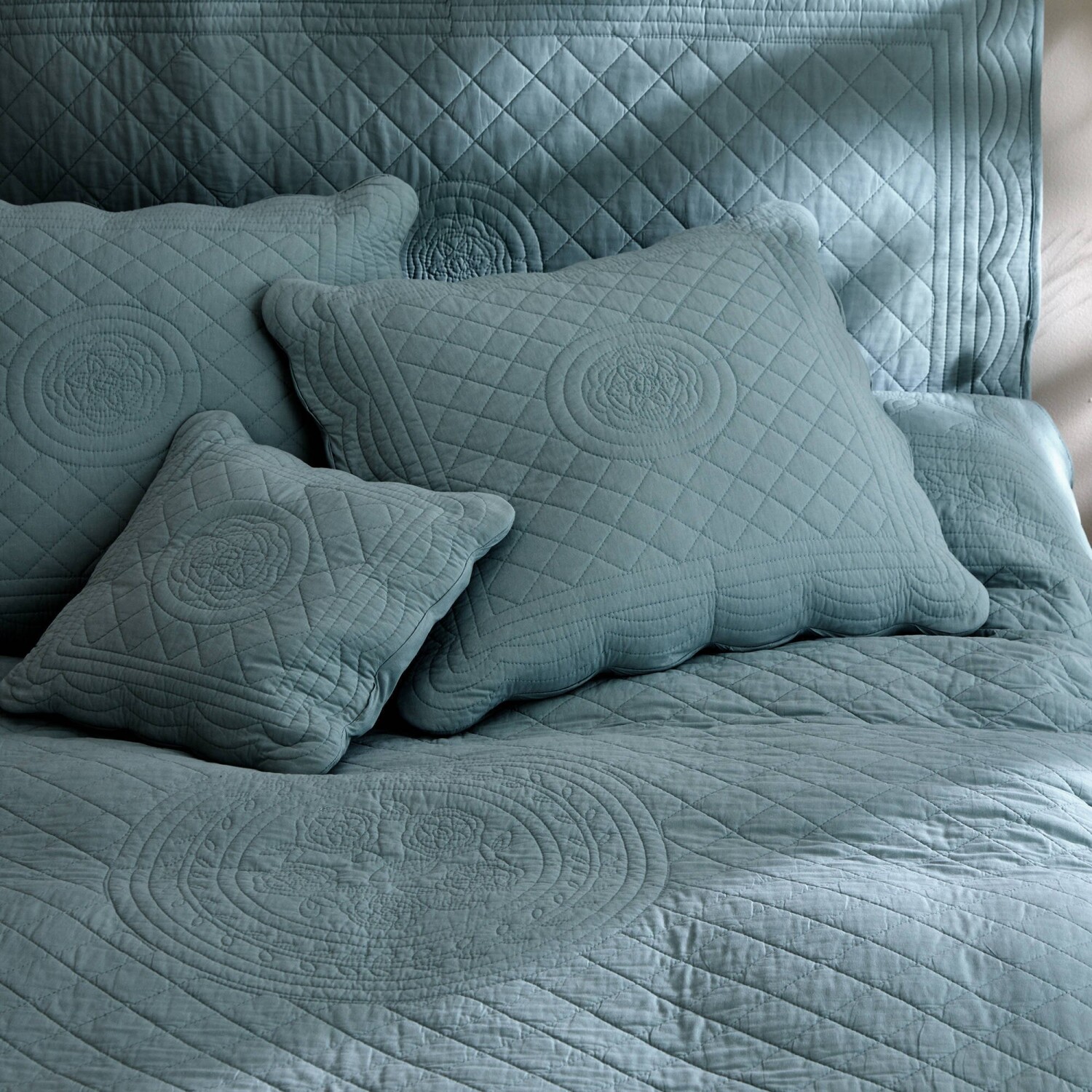 Wyrafinowana i starannie wykończona, ta pikowana narzuta wykonana jest z bawełnianego płótna. Jakość Colombine. Pikowana narzuta i poszewka z wypełnieniem, o pięknym, falistym wykończeniu i dopasowanym brzegu. Szyta ręcznie na maszynie. Motyw medalionu pośrodku. Standard 100 według Oeko-Tex (nr CQ 1216 / 1 IFTH). Ten znak identyfikuje produkty tekstylne poddane testom laboratoryjnym na obecność szerokiej gamy substancji szkodliwych, a produkt jest bezpieczny w stopniu wykraczającym poza obowiązujące normy.