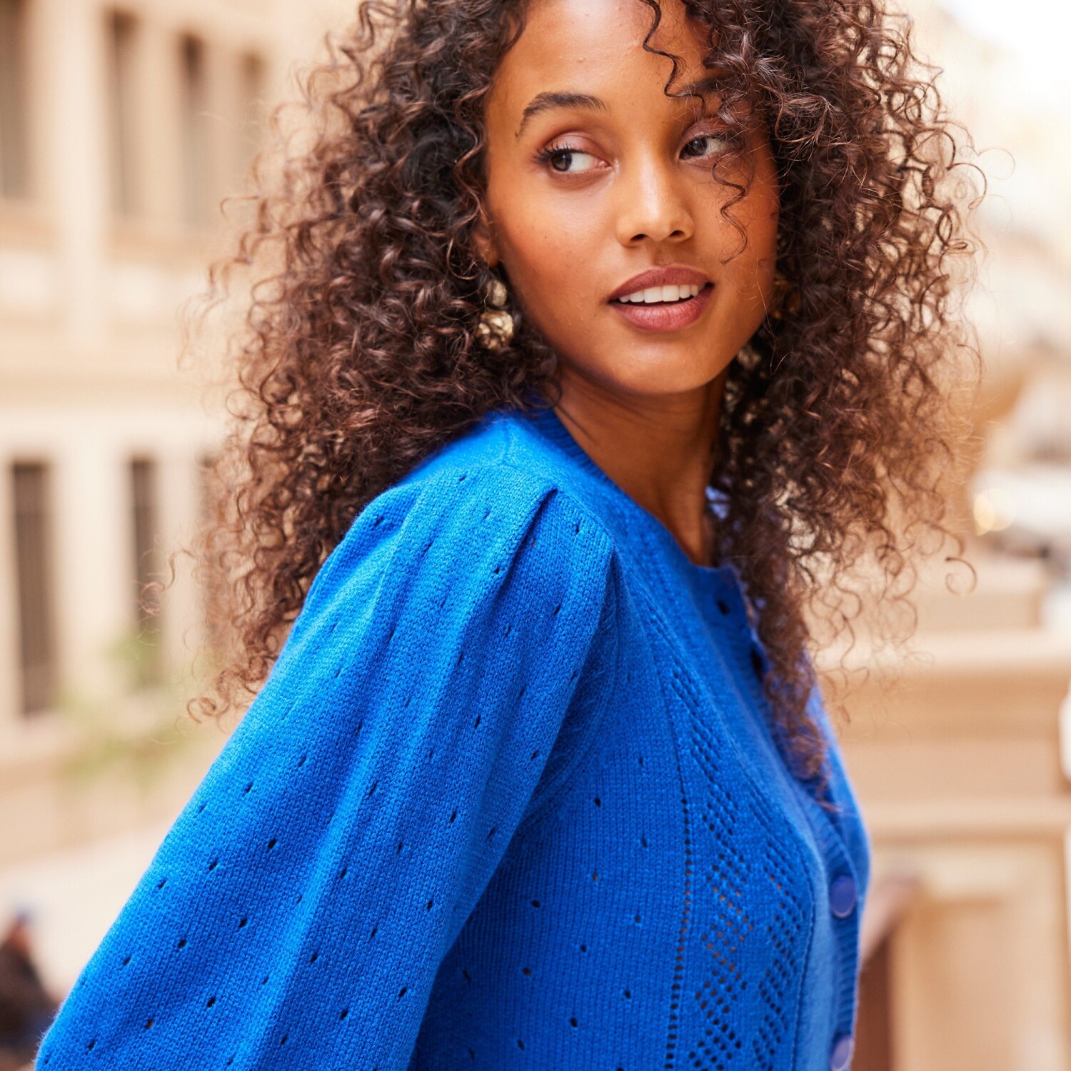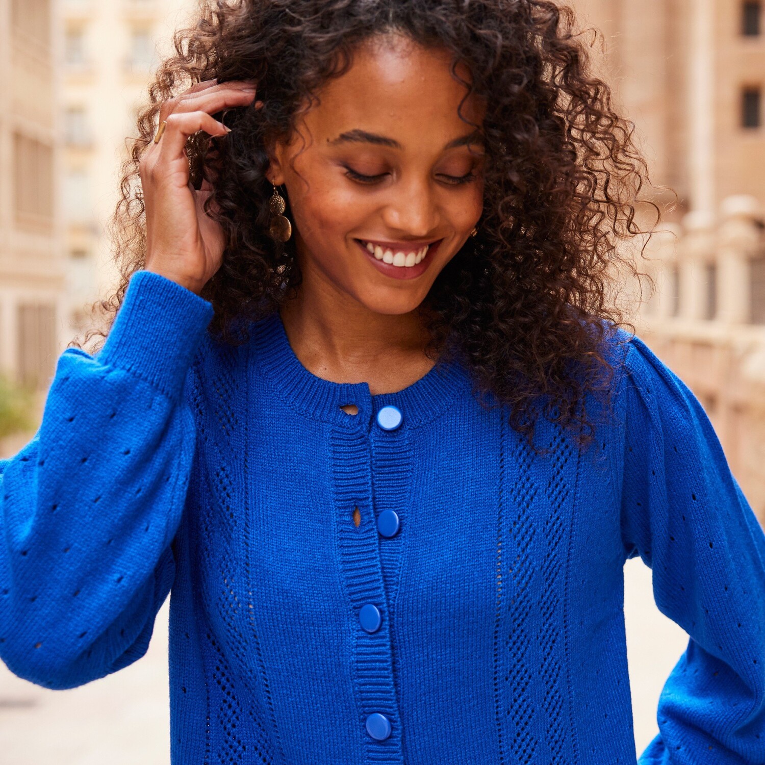 Jednokolorowy sweter zapinany na guziki