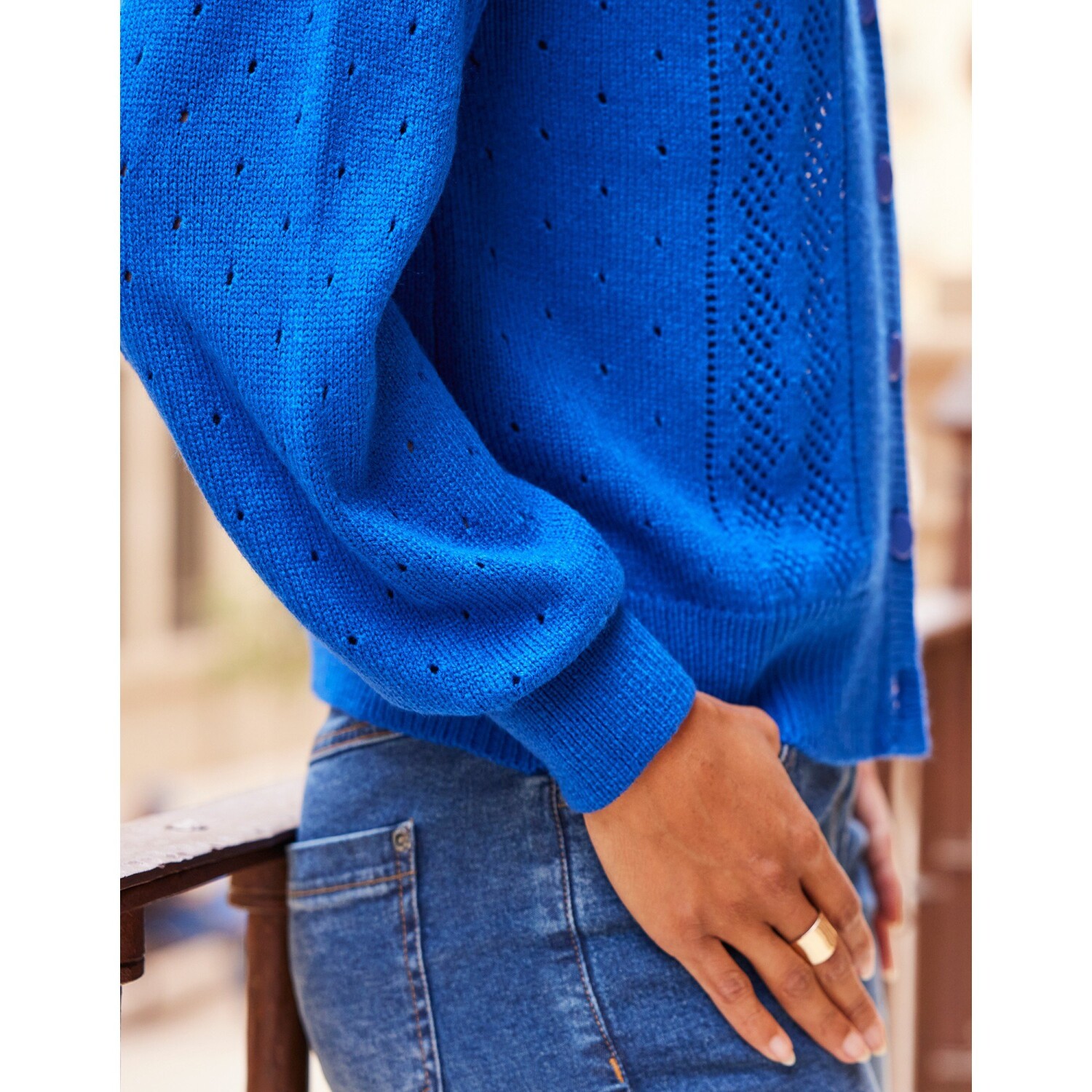 Praktyczny krój i stylowy wygląd – ten sweter jest miękki w dotyku. Prosty krój, łatwy w utrzymaniu. Okrągły dekolt. Długie rękawy. Zapięcie z przodu na perłowe guziki. Prosty dół. Można prać w pralce.