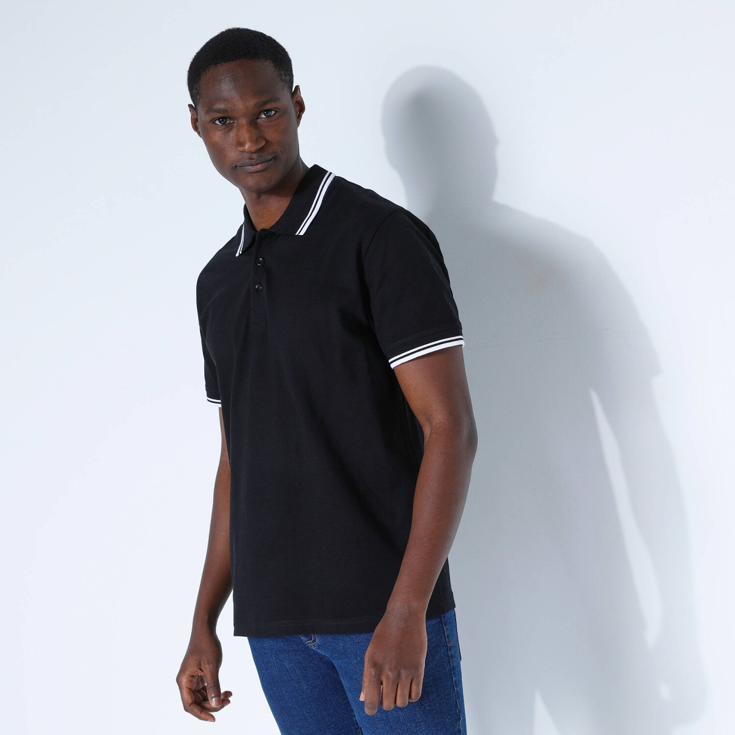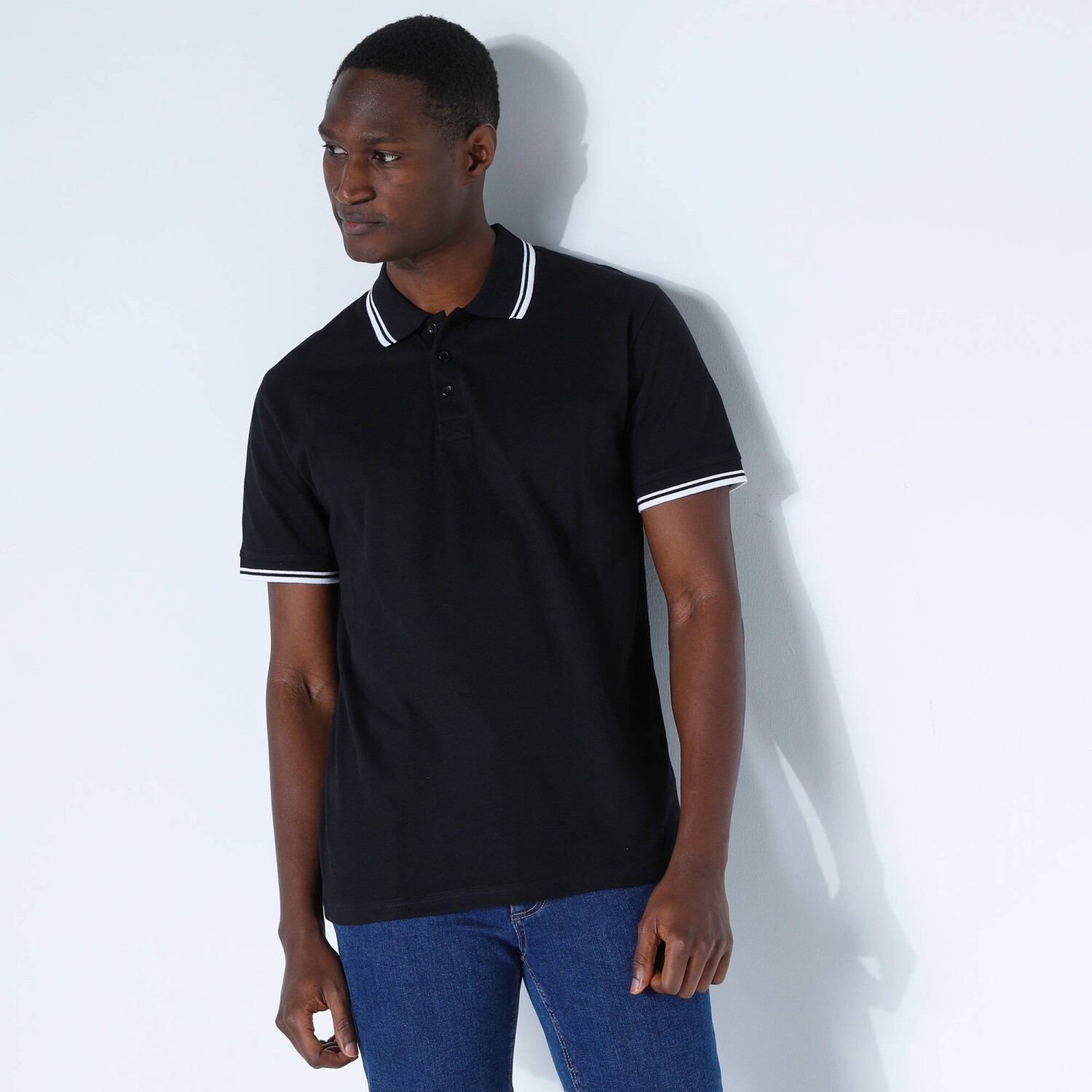 Koszulka polo z dzianiny piqué z krótkimi rękawami i paskami na rękawach i kołnierzyku