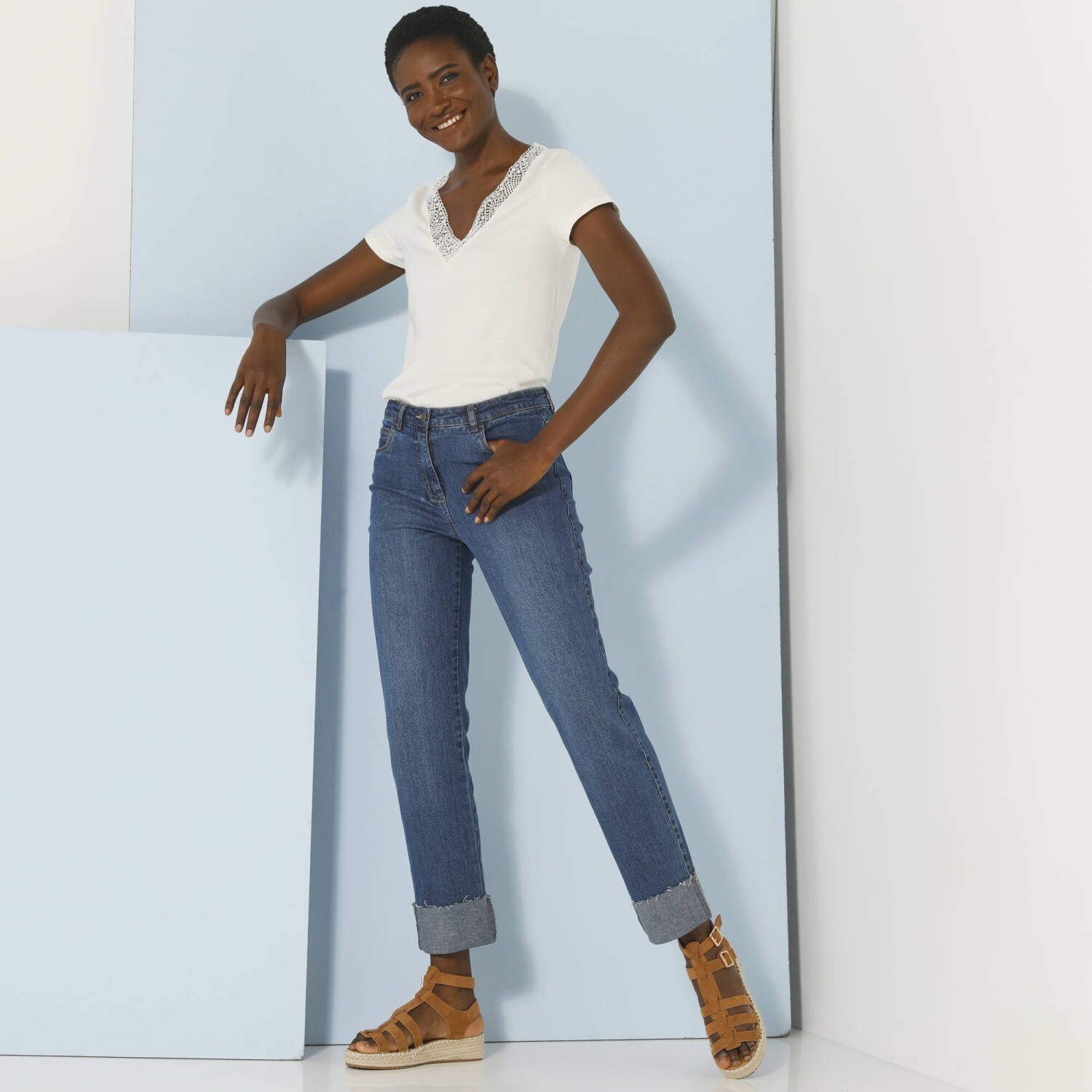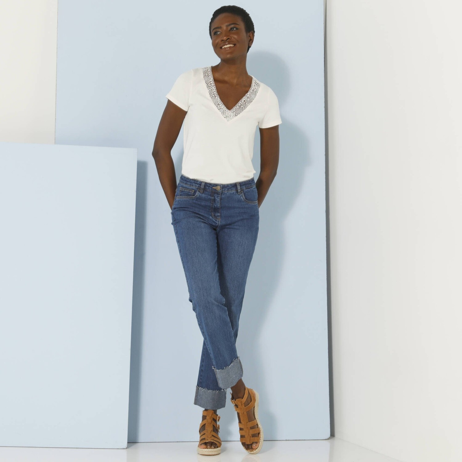 Ulubiona koszulka V-neck z koronką może być podstawą każdego stroju. Przewiewny dżersej. Dekolt w szpic z koronką. Krótkie rękawy. Prosty dół. Standard 100 według Oeko-Tex (nr CQ 1216 / 3 IFTH). Ten znak identyfikuje produkty tekstylne, które zostały poddane testom laboratoryjnym pod kątem szerokiej gamy szkodliwych substancji, a produkt jest bezpieczny poza obowiązującymi normami. Można prać w pralce.