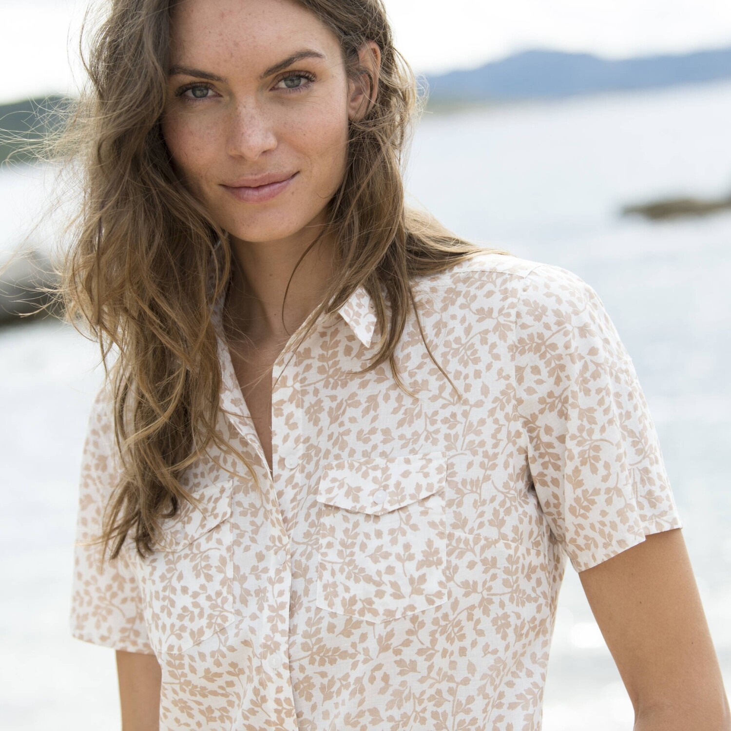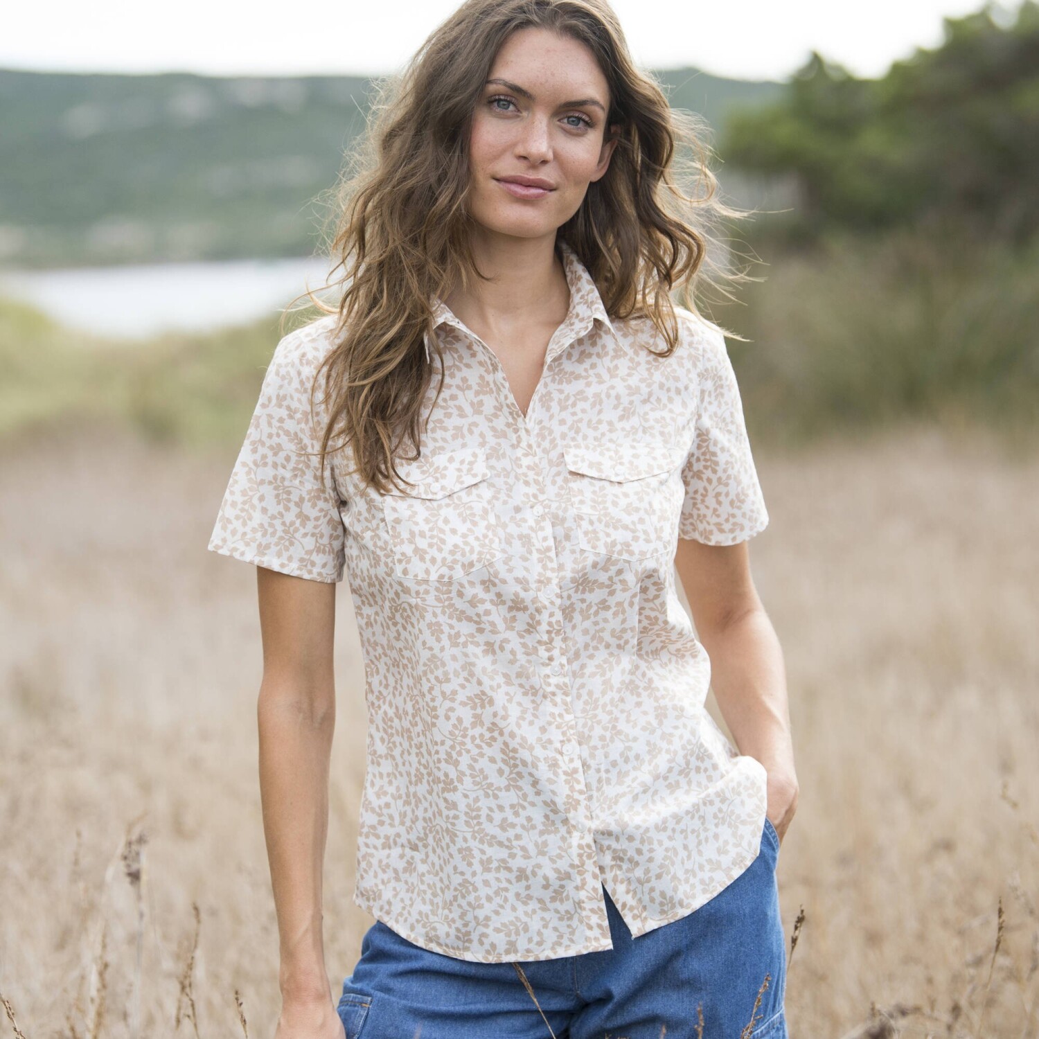 Ultra kobieca koszula jest wygodna w noszeniu. Kołnierzyk koszulowy. Zapięcie na guziki. Zaszewki na piersi. Rozcięcia na ramionach z przodu i z tyłu. 2 naszywane kieszenie na piersi z zapięciem na guziki. Krótkie rękawy z zapięciem na guziki. Pionowe rozcięcie z tyłu. Lekko zaokrąglony dół. Prać w temperaturze 30°C.