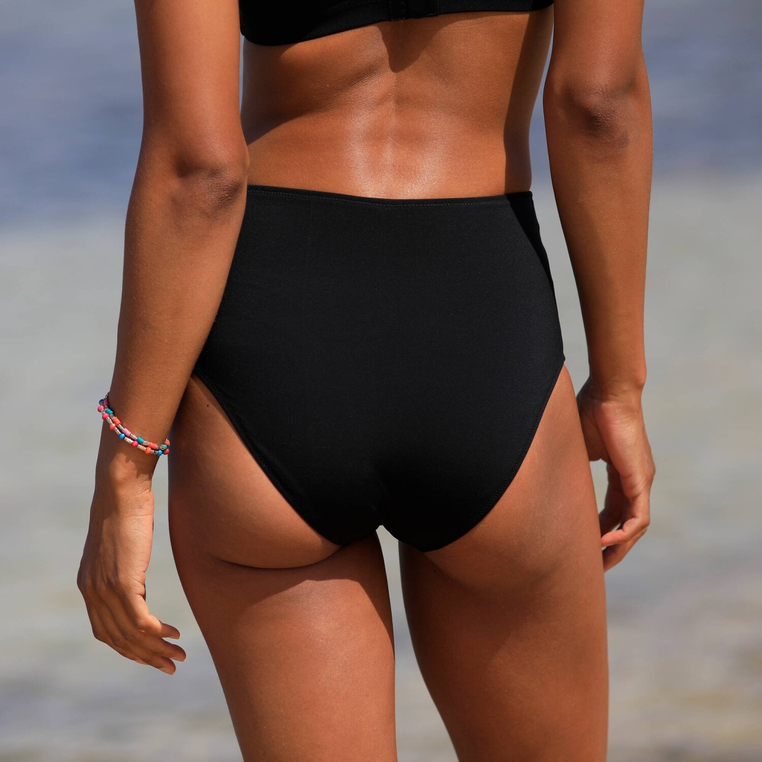 Wysokie figi kąpielowe Ilaya wyrzeźbią Twoją sylwetkę i dodadzą Ci pewności siebie. Pożegnaj się z kompleksami na punkcie strojów kąpielowych! Majtki wykonane ze ściągającego materiału z domieszką elastanu modelującego talię. Przód podszyty mikrofibrą. Wysoka talia do pępka. Wycięty fason optycznie wydłuża sylwetkę. Talia i nogawki wykończone zygzakowatym szwem. Dzianinowa podszewka w kroku. Standard 100 według Oeko-Tex (nr CQ 1216/3 IFTH). Znak ten identyfikuje produkty tekstylne, które zostały poddane testom laboratoryjnym pod kątem szerokiej gamy szkodliwych substancji, a produkt jest bezpieczny poza obowiązującymi normami. Można prać w pralce. Odporny na chlor, odpowiedni na basen i plażę. Zalecamy płukanie w czystej wodzie po każdym użyciu.
