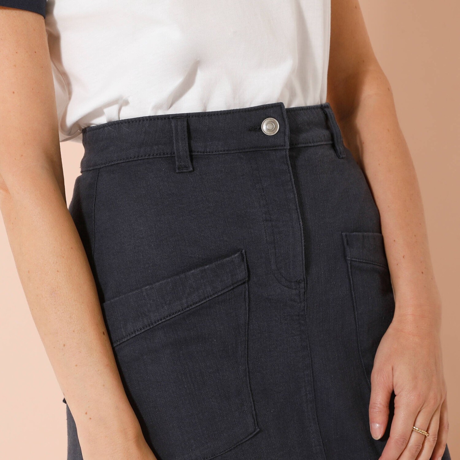 Od niepamiętnych czasów biała spódnica jest podstawowym elementem kobiecej garderoby. Przedstawiamy ją w wygodnym bawełnianym kroju z certyfikatem STANDARD 100 by OEKO-TEX. Długość przed kolano. Wyprofilowana talia ze szlufkami. Zapięcie na suwak + 1 guzik. 5 kieszeni. Podniesiony tył. Prosty dół. Certyfikat OEKO-TEX Made In Green. Oprócz weryfikacji kilkuset substancji chemicznych, które przyczyniają się do wysokiego bezpieczeństwa, etykieta ta gwarantuje rozważne zasady produkcji i kontrolowane praktyki społeczne. Można prać w pralce.
