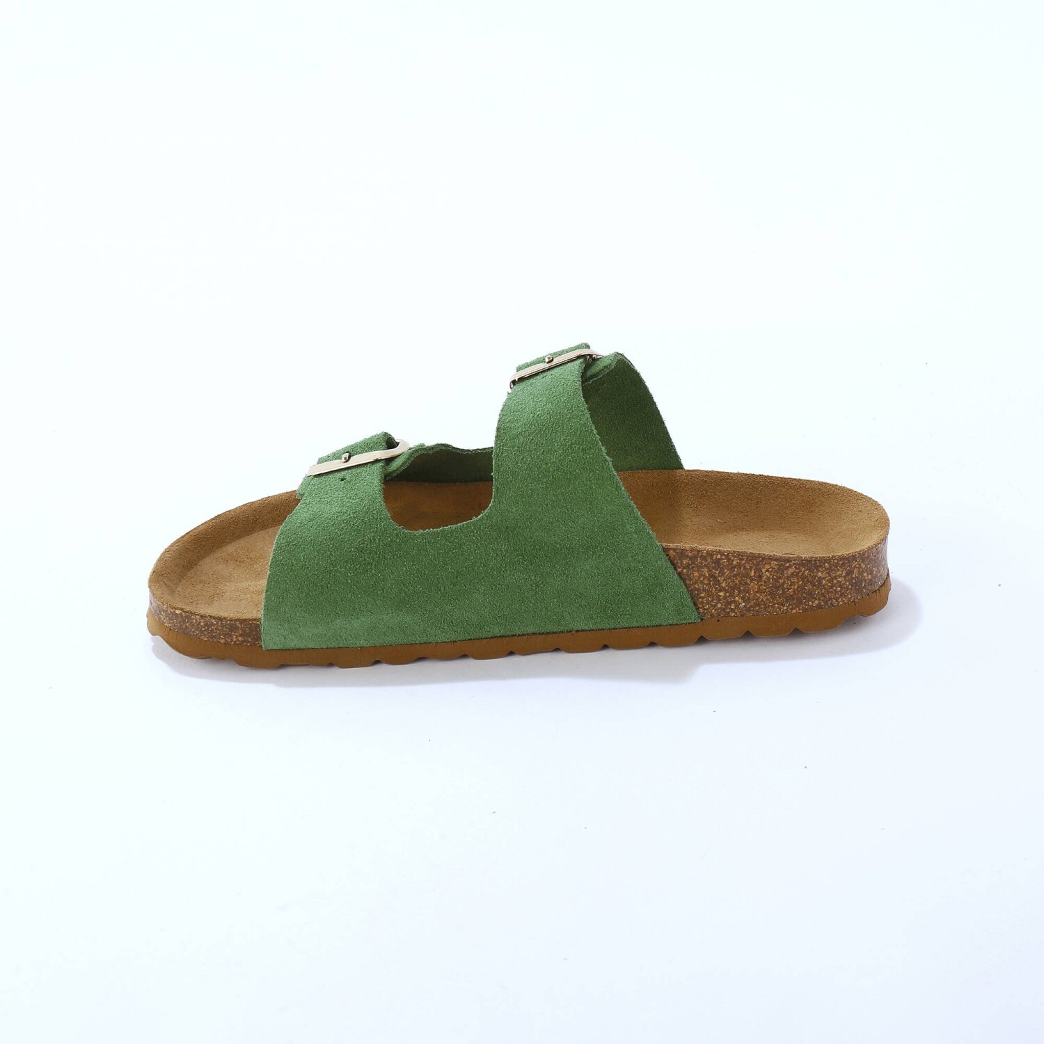 Ciesz się jakością skóry i wsuń się w wygodne kapcie z 2 klamrami dla indywidualnego dopasowania. 2 paski z metalową klamrą na cholewce. Wyprofilowana wkładka. Antypoślizgowa podeszwa z korka w kształcie klina. Te kapcie są wykonane ze skóry pochodzącej z garbarni certyfikowanych przez Leather Working Group, które zobowiązały się do zmniejszenia wpływu na środowisko poprzez niższe zużycie wody i energii. Buty należy regularnie konserwować środkiem chroniącym przed plamami i wilgocią.