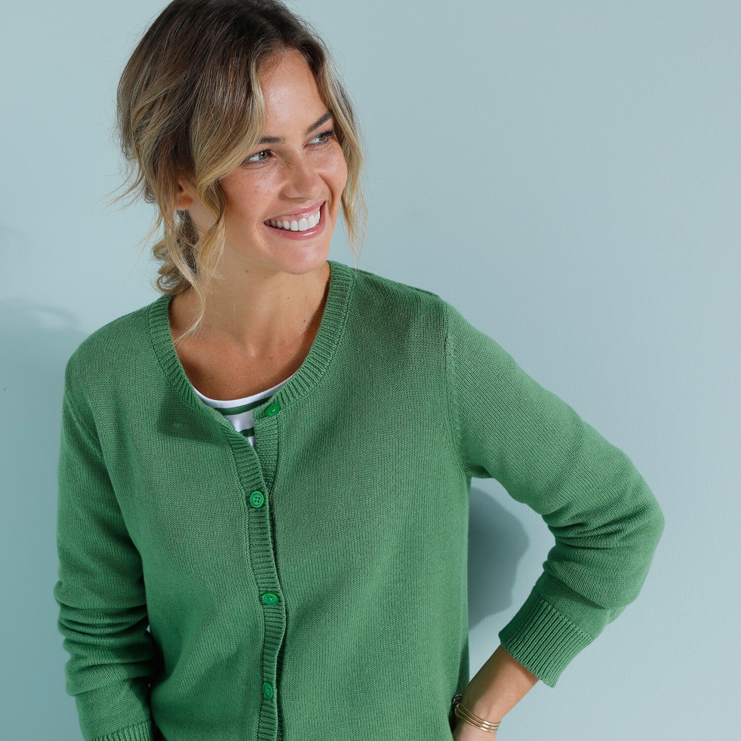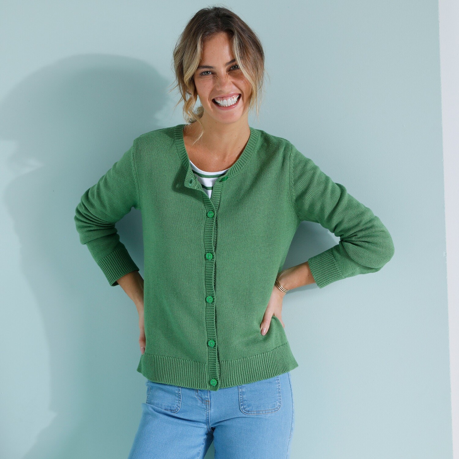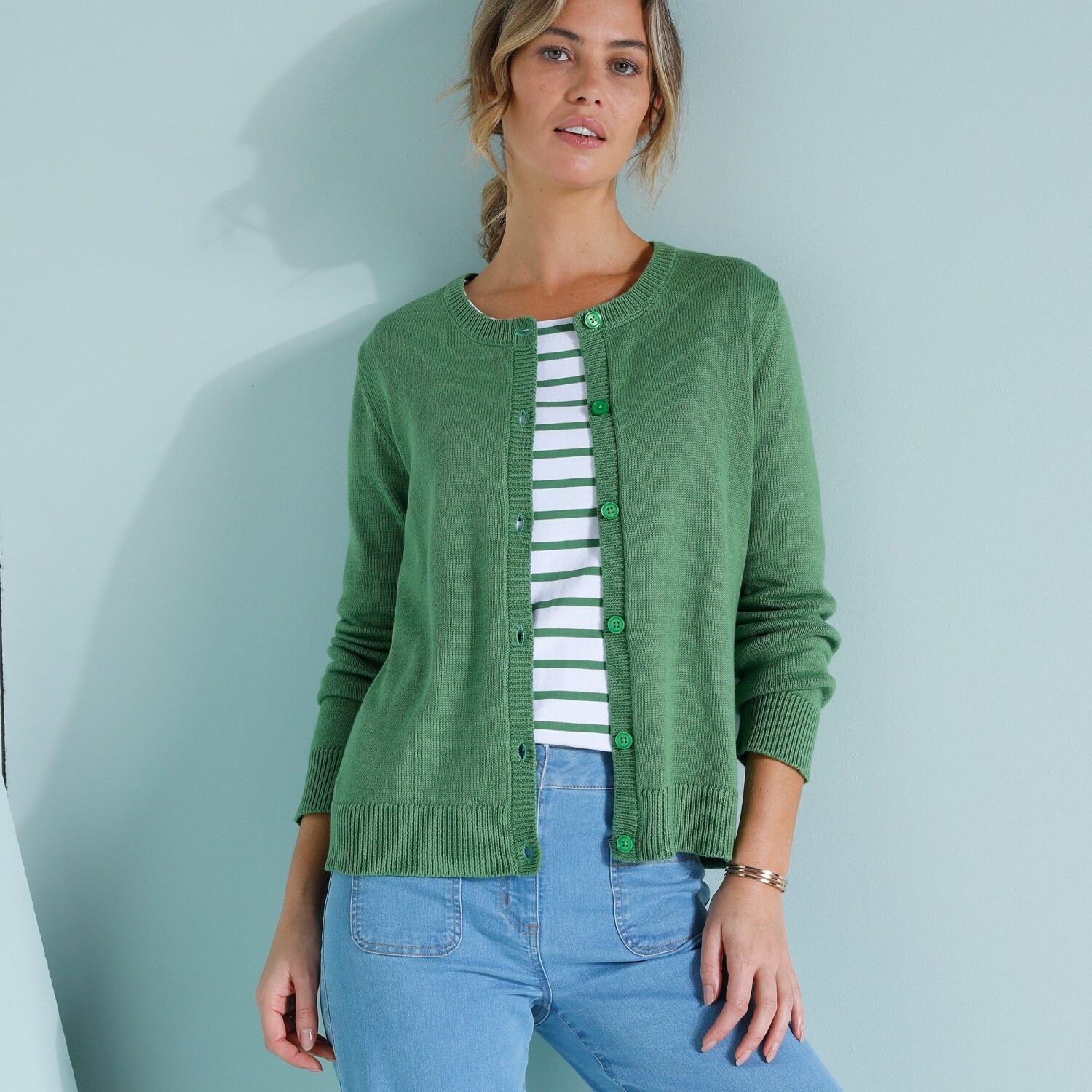 Zapinany sweter z żakardowym wzorem i miękką podszewką