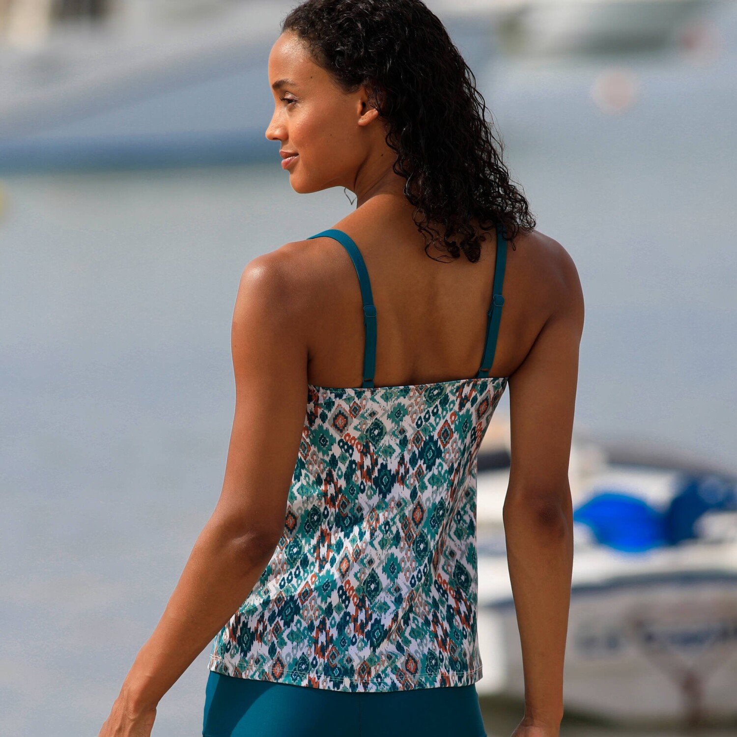 Pożegnaj się z kompleksami i sięgnij po top tankini z nadrukiem. Kolekcja Tanza wyróżnia się etnicznym i egzotycznym nadrukiem. Głęboki dekolt V. Zintegrowany biustonosz z podszewką z mikrofibry i wyjmowanymi miseczkami. Kokardka między piersiami. Regulowane ramiączka z tyłu. Oeko-Tex standard 100 (nr CQ 1216 / 3 IFTH). Znak ten oznacza produkty tekstylne, które zostały poddane testom laboratoryjnym pod kątem szerokiej gamy szkodliwych substancji, a produkt jest bezpieczny poza obowiązującymi normami. Można prać w pralce. Zalecamy płukanie w czystej wodzie po każdym użyciu. Odporny na wodę morską i chlor, odpowiedni na plażę i basen.